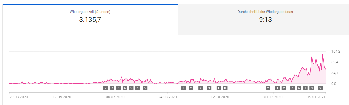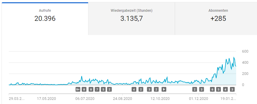 Über den gestrigen Abend und die Nacht verteilt hatte ich auf meinem Channel über 120 Aufrufe, seit heute Morgen sind die Aufrufzahlen aber wieder „normal“