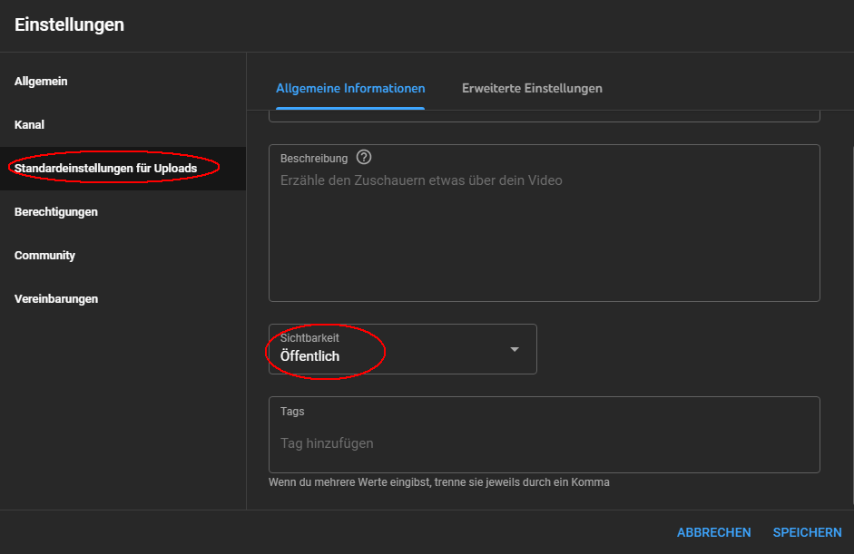GoetzSaCebu Zumindest was die Sichtbarkeit beim Upload angeht, guck mal im Youtube Studio (Desktop Version) unter den Einstellungen, dort gibt es die Einstellungsmöglichkeiten.