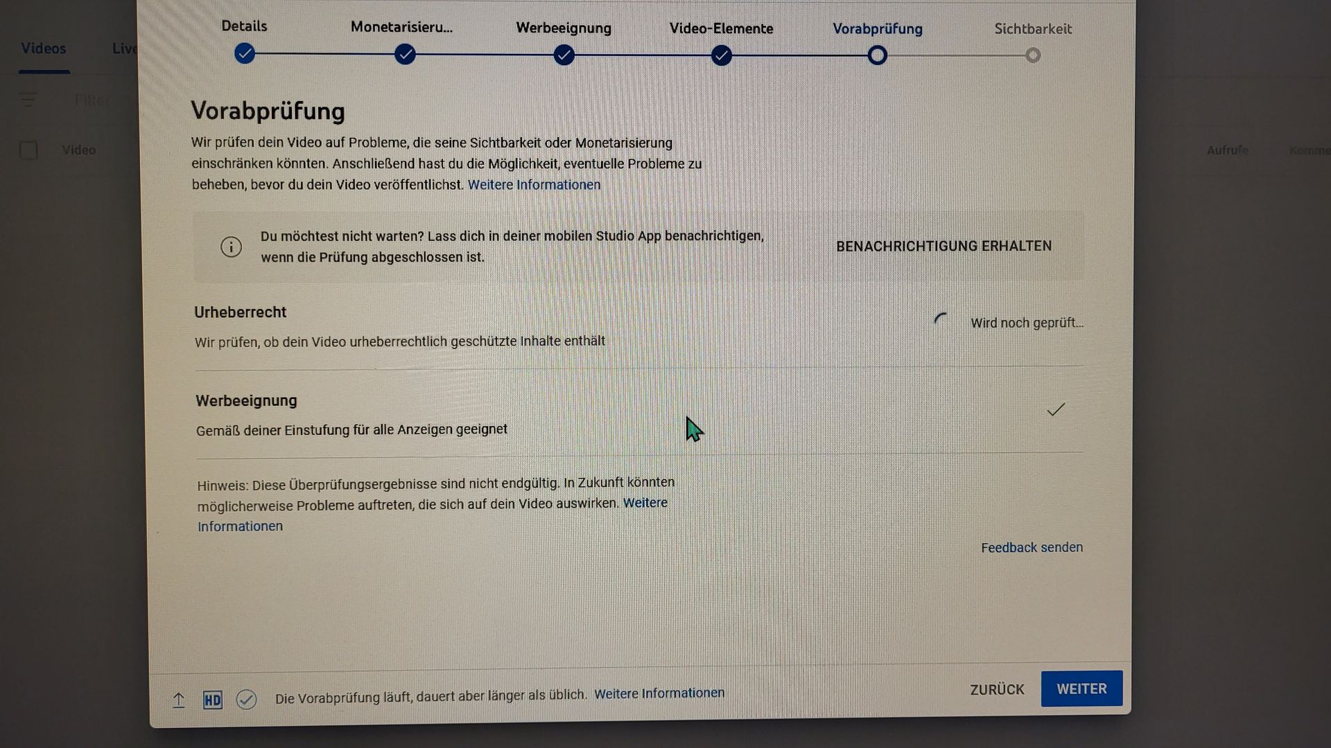 Wie ihr am angehäntem Foto seht, habe ich mich schon gefragt ob es geht bzw "erlaubt" ist wenn noch der Prozess der Urheberprüfung und Werbeeignung läuft auf weiter zu klicken und dann das Video für paar Tage vorauszuplanen und alles fertigzustellen? Die APP wie dort angegeben benutze ich nämlich nicht.