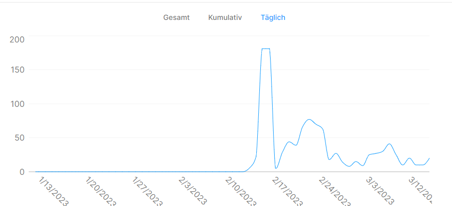 Danke für eure Einschätzung & Hilfe! Die beiden hohen Pieks sind jeweils 181 Abos an einem Tag!