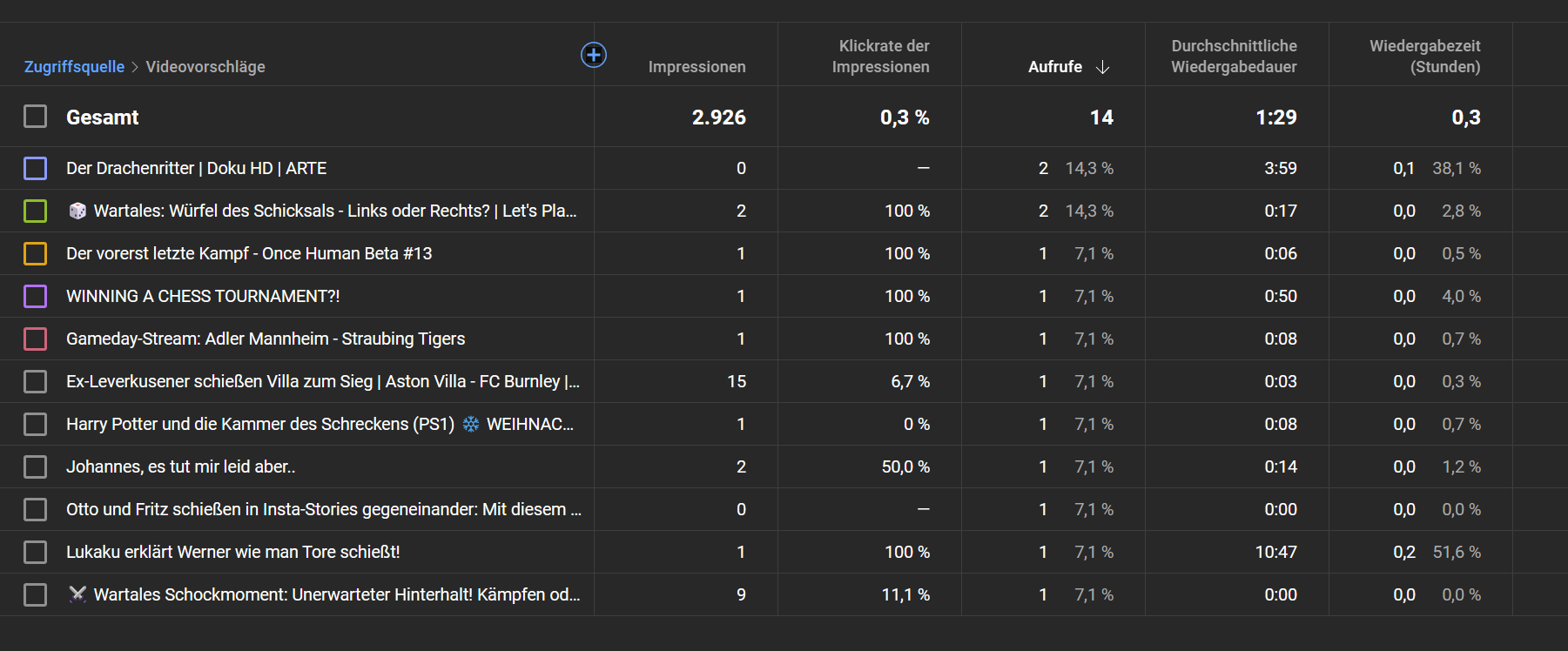 obwohl Sie gerade etwas anderes anschauen. Bis jetzt sieht das gut aus mit den Aufrufen.