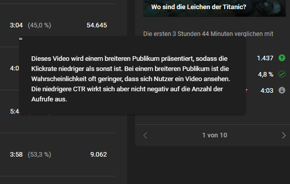 2. Hast du die Zielgruppe der bisherigen Videos mal verglichen? Gerade wenn du noch recht neu bist, hat der Algorithmus noch keine allzu stabilen Daten, wer dein tatsächliches Publikum ist und wer nicht. Wenn deine ersten Videos zu 90% Männer um die 60 waren und du dann eins raus bringst, das fast ausschließlich junge Frauen Mitte 30 schauen, dann kann das das System durcheinander bringen. (Ja, genau das habe ich mal geschafft....)
