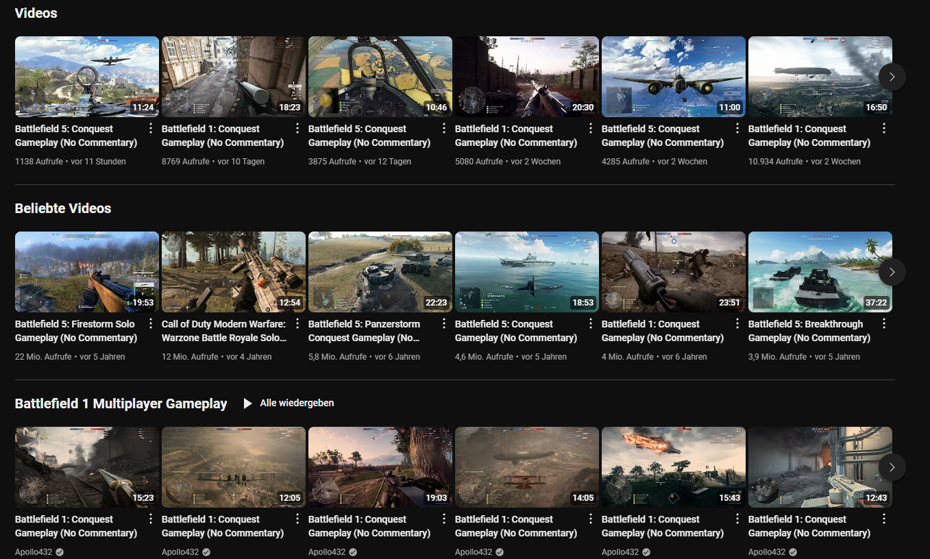 Und das mit einfachen, aber guten Gameplayvideos von verschiedenen "beliebten" FPS-Shootern.