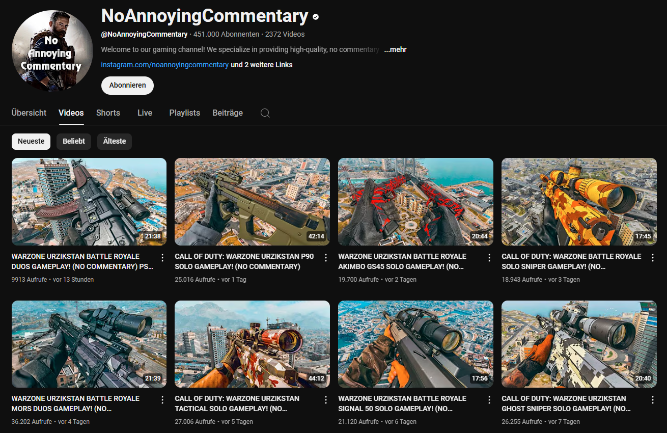 Bei den oben gezeigten Kanälen, schauen die meisten der Zuschauer auch nur wegen dem guten Gameplay zu.