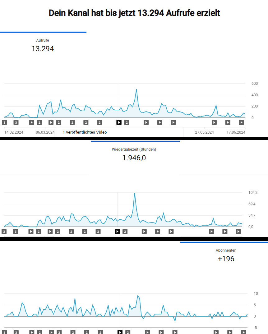 Das mit dem Kommentieren bei artverwandten Kanälen hab ich früher mal mit einem anderen Projekt gemacht. Wurde mir auch empfohlen von einem erfolgreichen Kanal. Nunja....... mein Kanal ist trotz aller Bemühungen nicht von der Stelle gekommen. Die Konkurrenz war zu stark und die Nische zu schmal, da hätte ich bzw. hab ich mit oder ohne "Spam-Kommentaren" nichts verbessern können. Ich werds mal dezent beim Neuen probieren, aber ich geb zu, das liegt mir recht wenig, anderswo der Sichtbarkeit wegen Dinge zu kommentieren. Wenn sie tatsächlich gut sind, ok. Aber meist hat man so einen inneren Kritiker, der raus will und wenn ich den entfessele, ist der Effekt des Kommentierens wohl eher kontraproduktiv. Mal sehen.