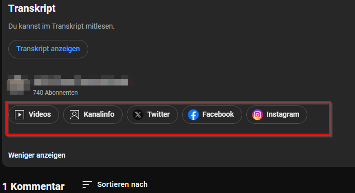 Ich habe das gerade für meinen Account gecheckt und bei mir wird das so (noch) nicht angezeigt. Ich vermute daher, dass Du da in einem Experiment der YT-Entwickler drin bist, und das ein Feature sein könnte, was irgendwann mal ausgerollt werden soll oder auch nicht (je nach Test-Ergebnissen des Experiments). Diese Links stehen bisher normalerweise nur auf der Kanalhauptseite, und können auch im Dashboard links unter Anpassen -> Allgemeine Informationen editiert werden