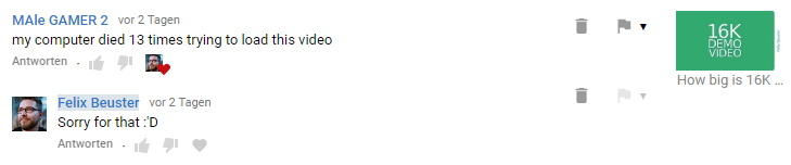 Als Kontext: Das Video wird auf YouTube in einer handlichen Auflösung von 14336 x 8064 Pixeln, bei 60 fps ausgestrahlt. ![]()