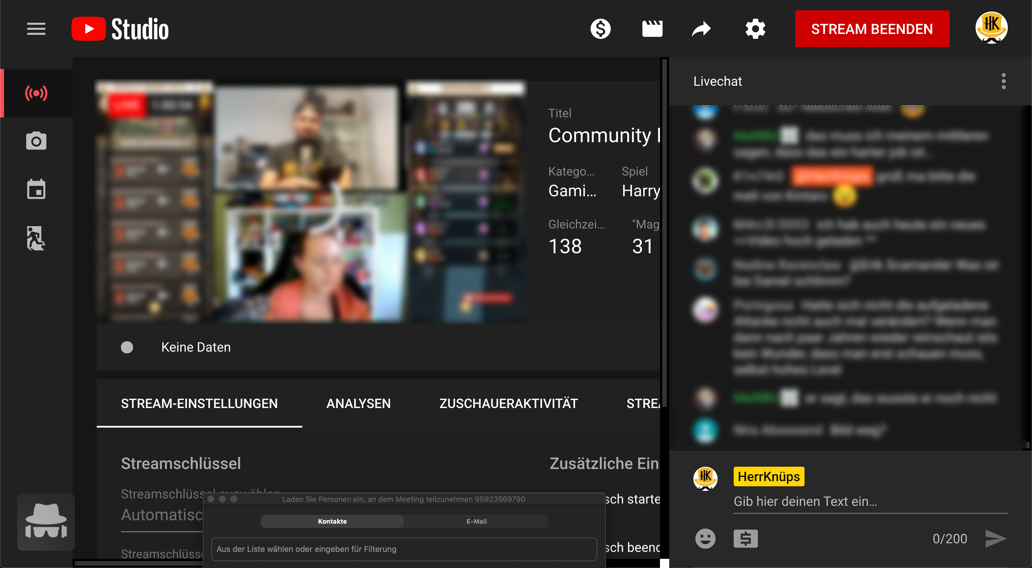 ich hatte nun schon das zweite Mal in Folge folgendes Problem: Mitten im Stream zeigt mir das YouTube Studio die Meldung "Keine Daten" an (dort, wo sonst "Sehr gute Verbindung" oder etwas ähnliches steht).