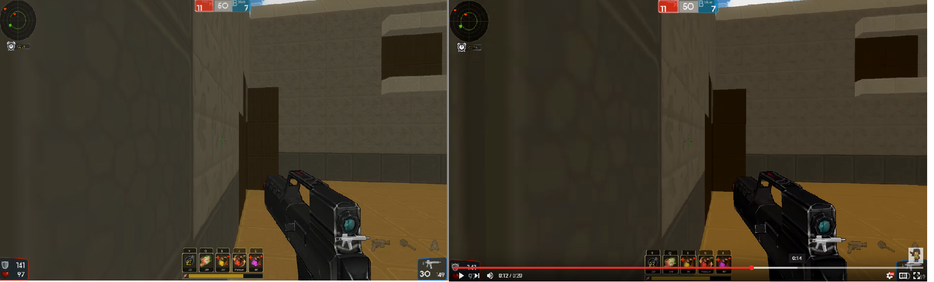 Rund um das Fadenkreuz oder bei den anderen Spielern, ist so eine Verpixelung, eine Art Flimmern zu sehen Wenn ich die noch ohne groß an Dateigröße zuzulegen wegbringen könnte wäre ich happy