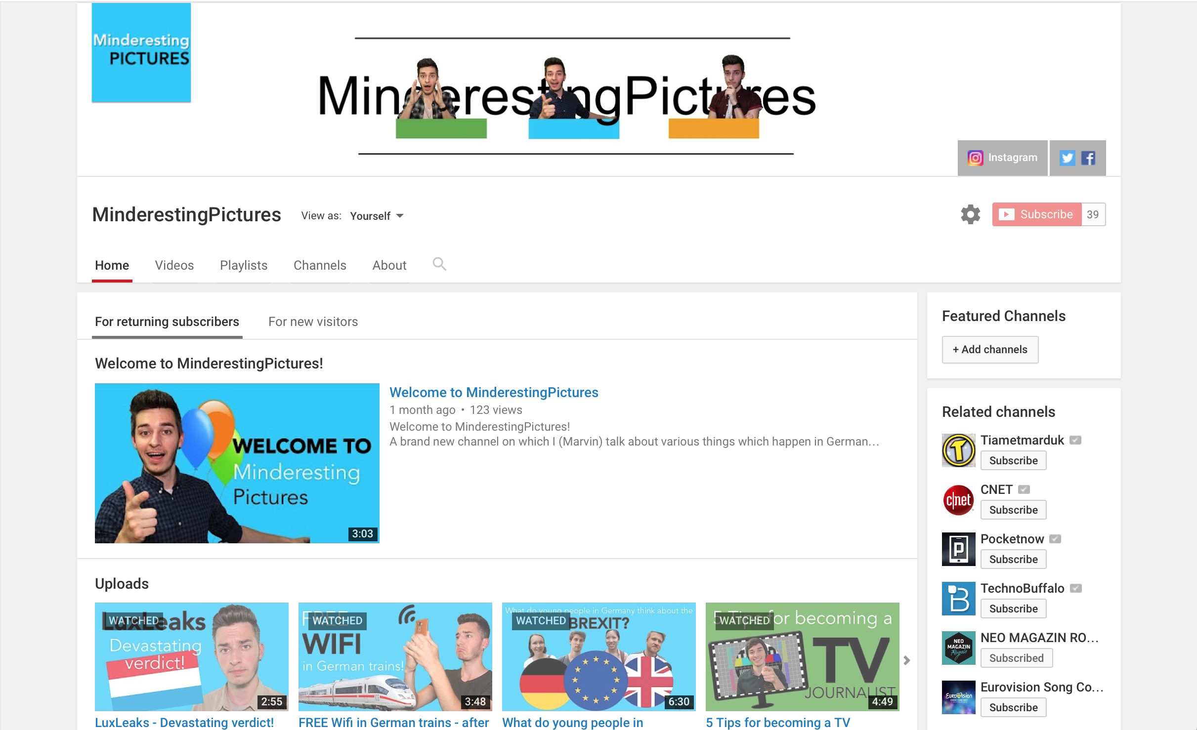 mein Name ist Marvin und ich arbeite nun schon seit knapp 4 Monaten an meinem Kanal MinderestingPictures: https://www.youtube.com/channel/UC3hekG458EdMK2KmbGbMHmw