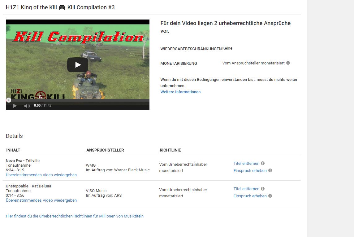 nun hab ich für beide Tracks das hier jetzt stehen- Vom Anspruchsteller monetarisiert