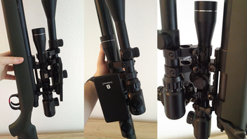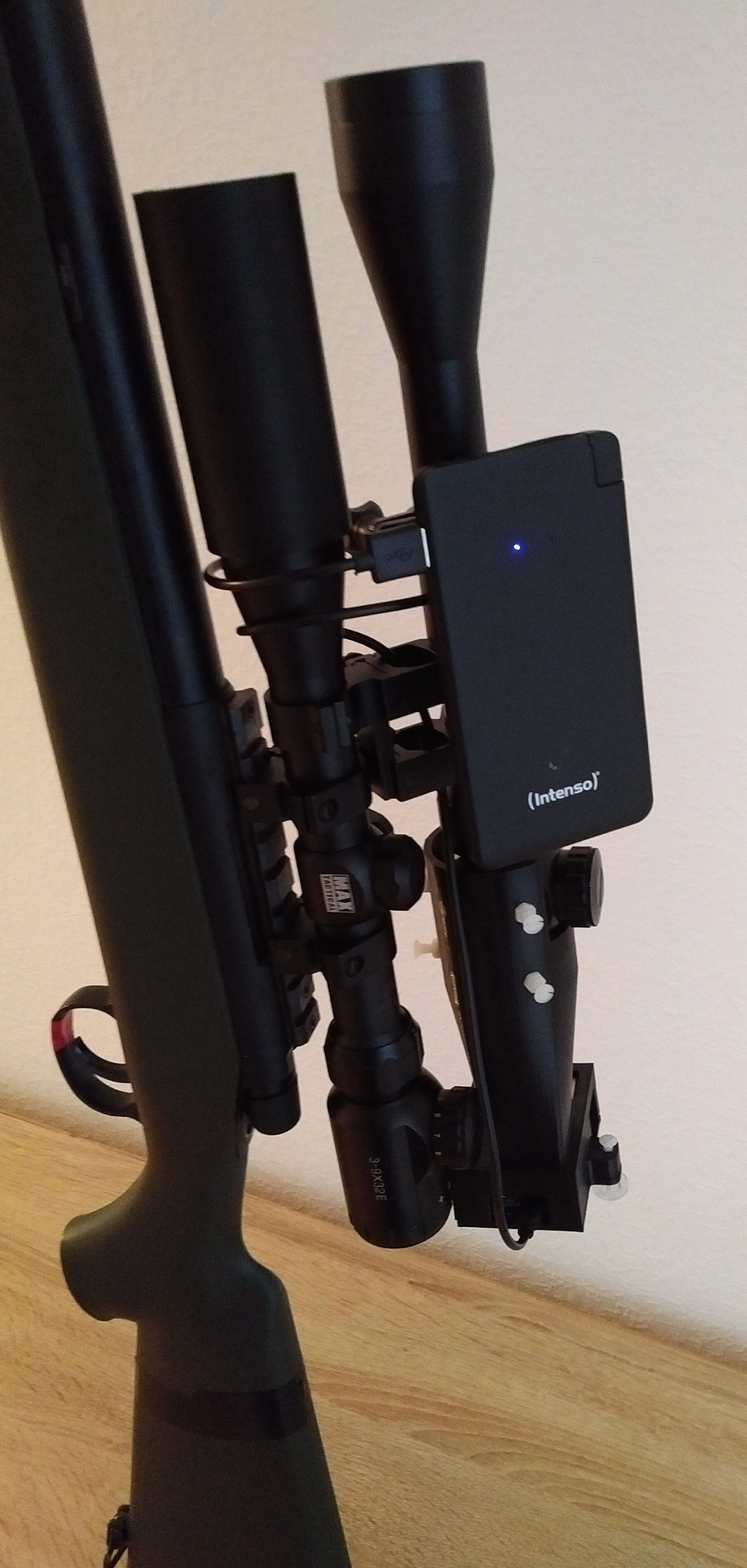 Ein Bekannter hat auf dieser Grundlage eine Montage entworfen, welche sich hinten an einem Zielfernrohr befestigen lässt. Eine actioncam filmt also durch