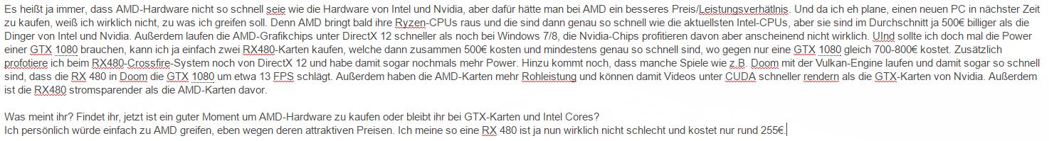 Aber die GTX-Karten sind überteuert, außerdem laufen die ATI-Grafikchips unter Windows 10 schneller als die Nvidia-Chips