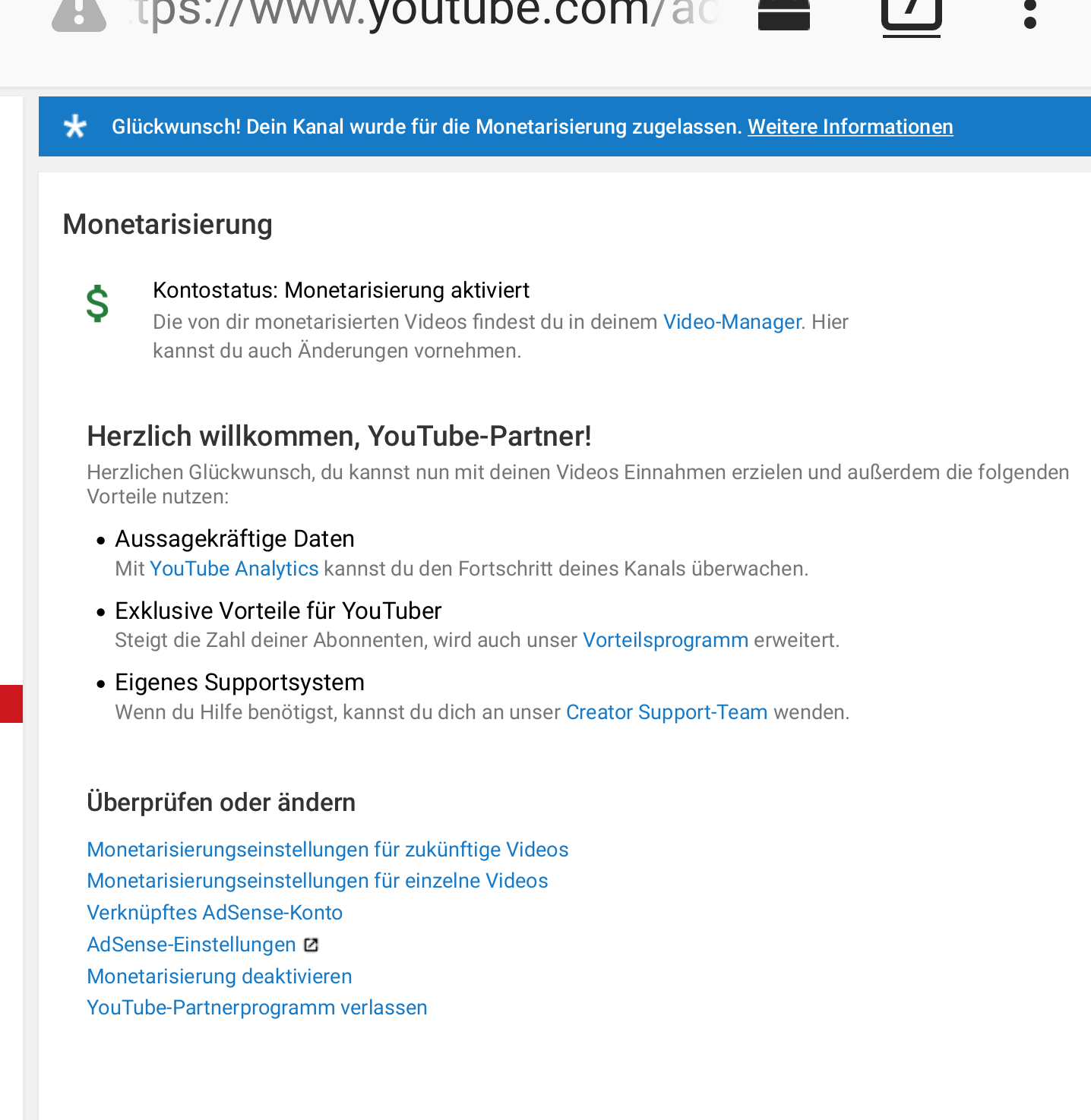 Läuft. Ist aber merkwürdig das von heute auf morgen so viele hier im Forum monetarisiert sind. Das war doch nicht nur eine manuelle Prüfung.