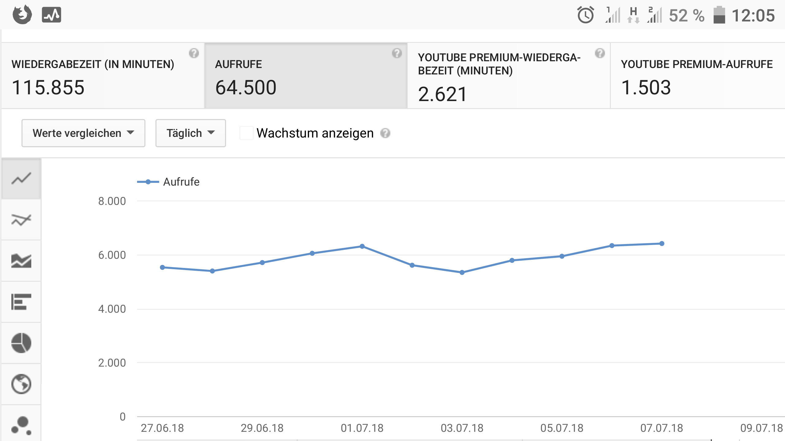 Hallo, seit heute ist der Umsatz für den 1. Mai drin. Dafür fehlen jetzt Aufrufe und Zeit für den 9. Mai. Der Umsatz vom 9. ist aber da.