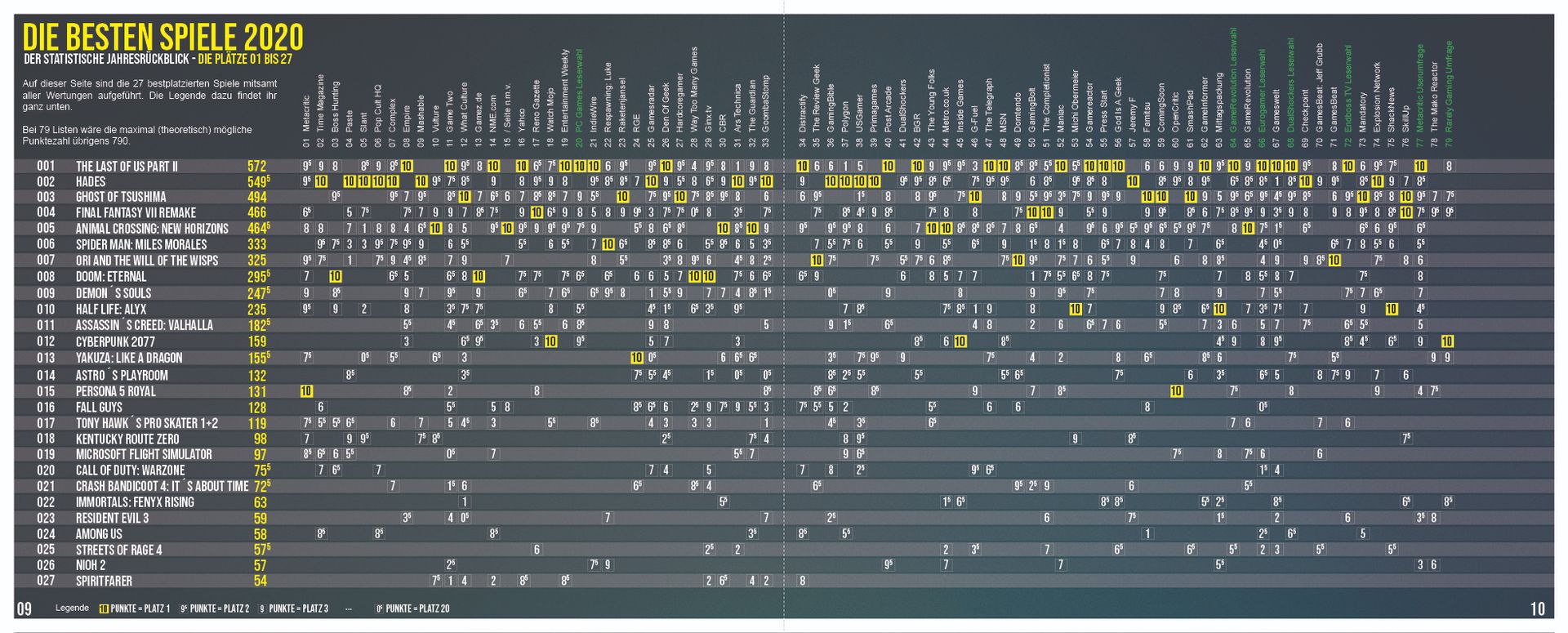 Aber was passiert, wenn man all diese Listen zusammenzählt und daraus eine gemeinsame Liste macht? Quasi die Liste aller Listen? Welche Spiele landen dann ganz vorne?