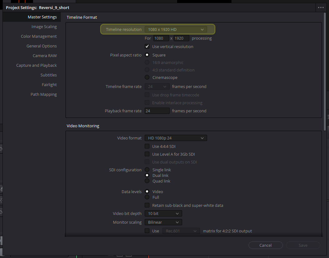 Dazu musst Du die Auflösung deiner Datei in Davinci Resolve (18) ändern!