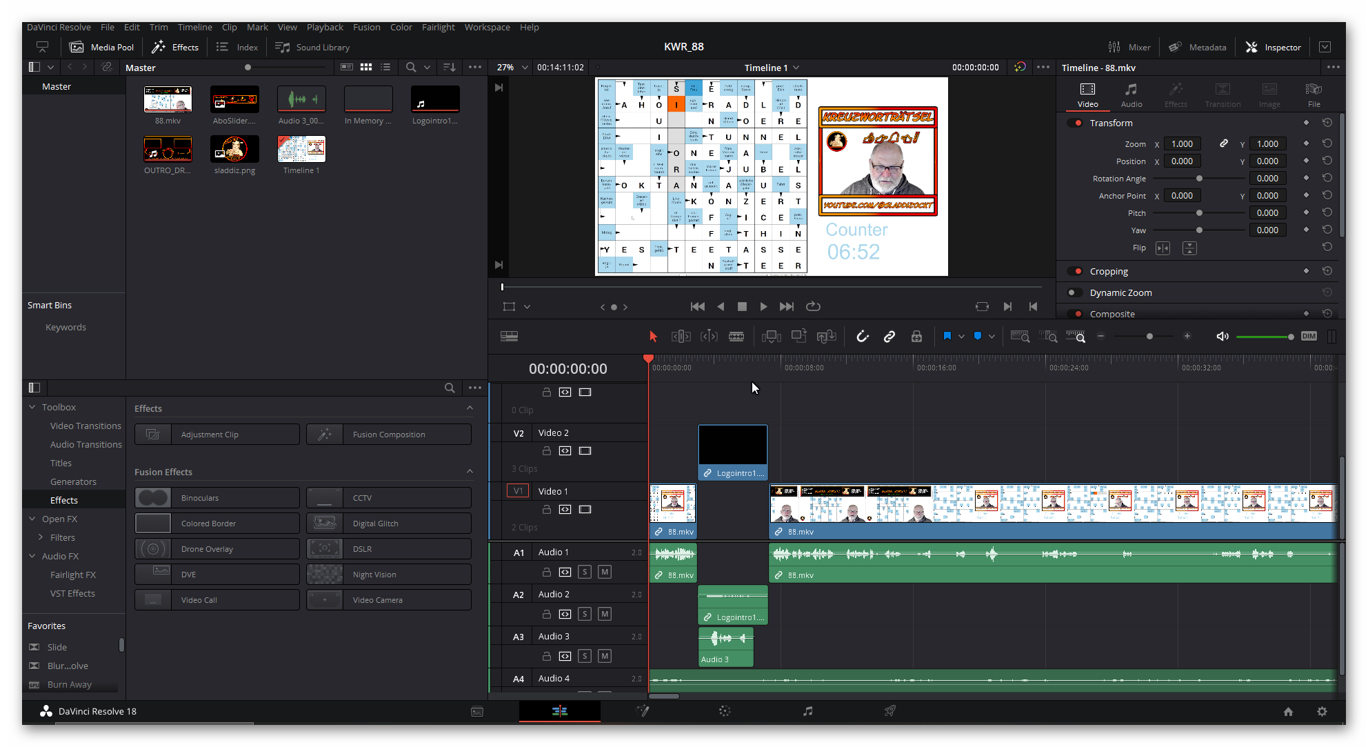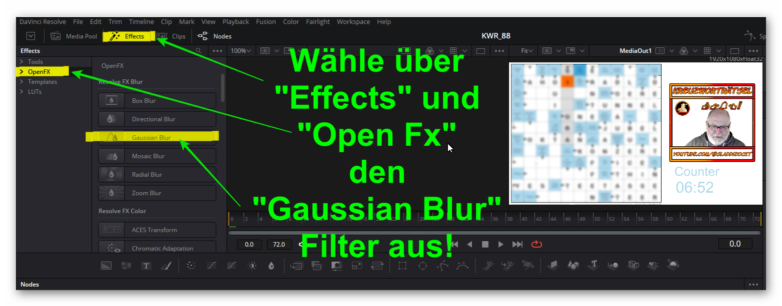 In meinen Kreuzworträtsel-Videos beginne ich immer mit einem kurzen Schnipsel aus dem eigentlichen Video, gefolgt von einem kurzen Intro.