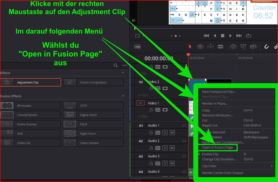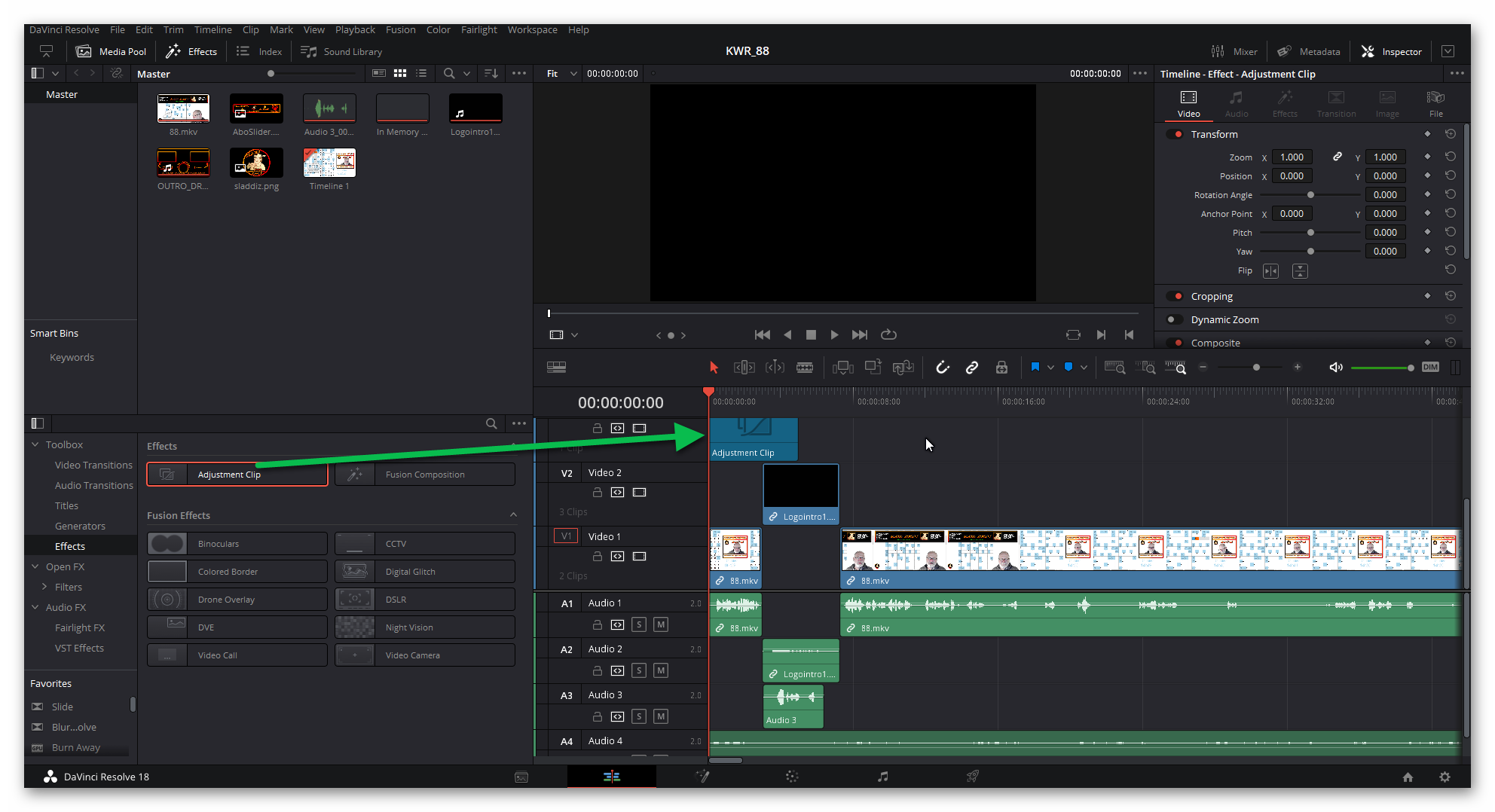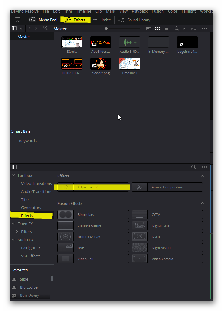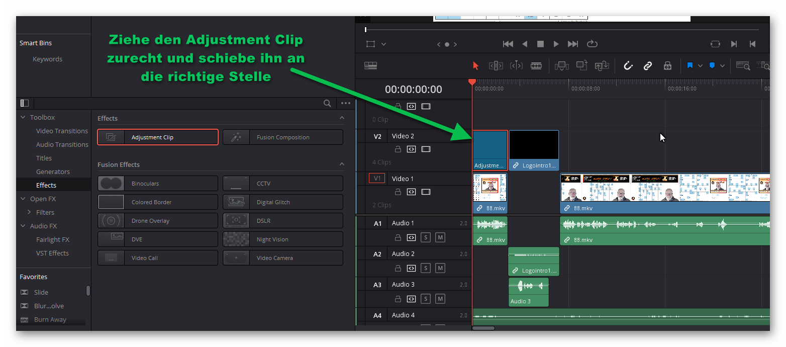 Jetzt suchst du unter den Effekten den "Adjustment Clip" aus!