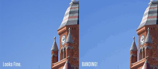 Es kommt also zu einem Treppen-Effekt der Banding genannt wird.